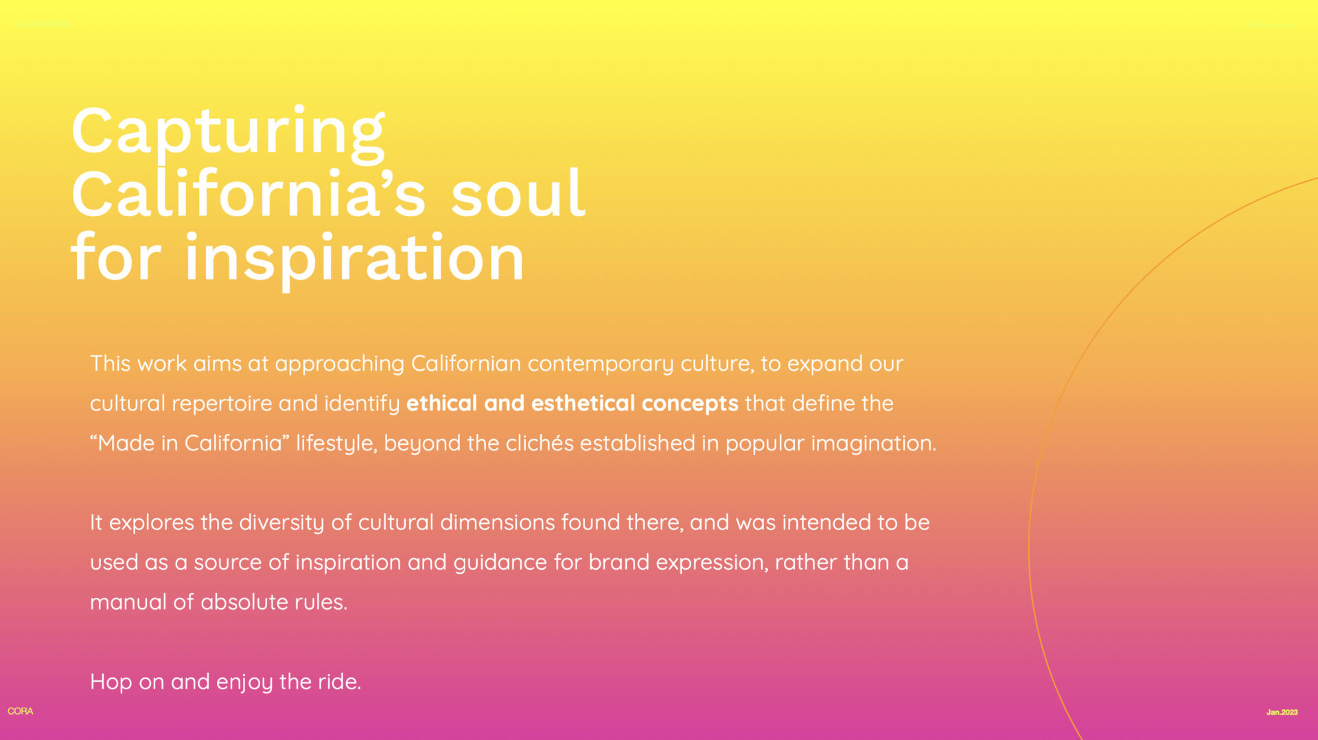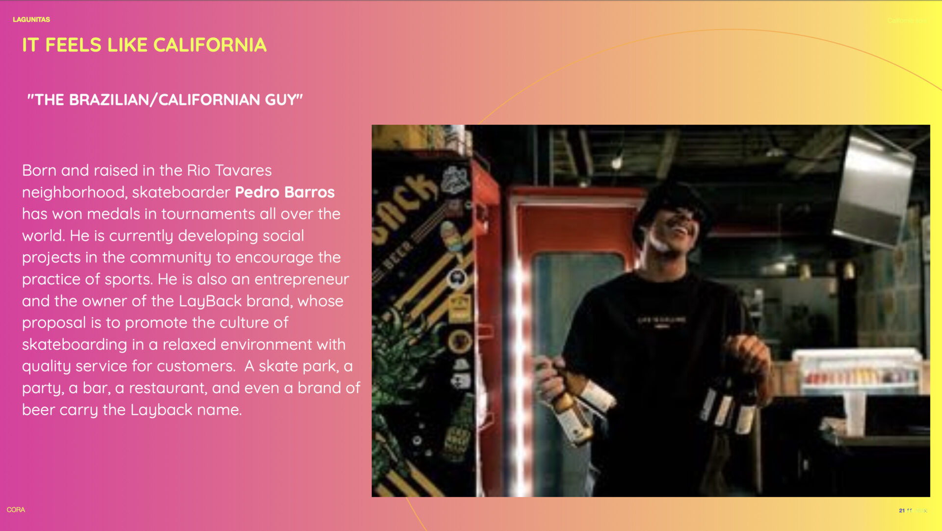 Para Lagunitas, desenvolvemos uma cartografia estética e cultural a fim de decodificar o imaginário da Califórnia, território simbólico da marca. O trabalho mapeou códigos visuais, narrativas e atmosferas que definem a expressão californiana contemporânea. — desde o design e a música até a arte urbana e os movimentos culturais.