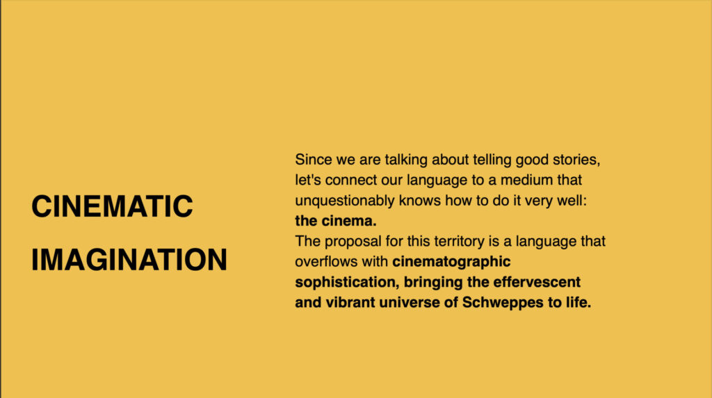 Desenvolvemos a estratégia de linguagem que deu forma visual e narrativa ao novo posicionamento de Schweppes, ajudando a traduzir sua evolução em uma identidade distintiva e expressiva. Ancorado no conceito de imaginação cinematográfica, o trabalho mapeou códigos estéticos que combinam sofisticação com espontaneidade.